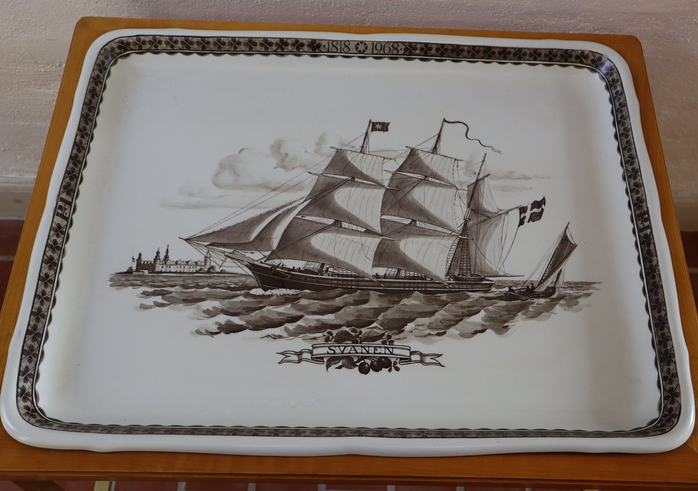 Kæmape Teblad Fajance Bakkebord 58 x 53.5 cm Skibsstel Svanen 1818 1968