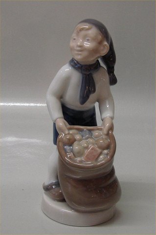 Beskrivelse: Kgl. figur fra Royal Copenhagen 4534 December - dreng med julegavesæk 17 cm Design Hans Henrik Hansen 1894-1965. HHH I hel og fin stand
