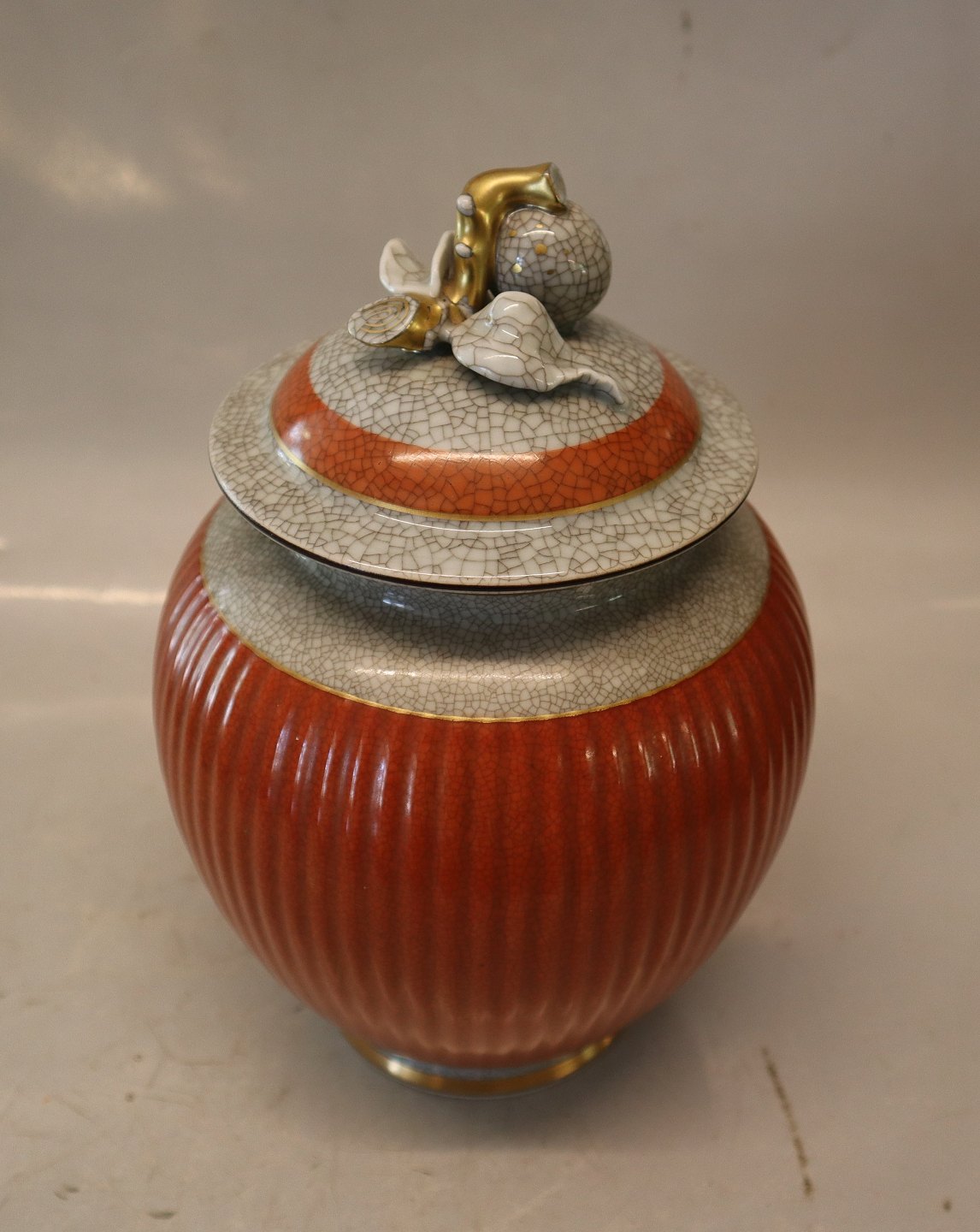 212-2781 Kgl. Lågkrukke med gråt, orange og guld 25 cm Kongelig Dansk Craquelé, Craquele
