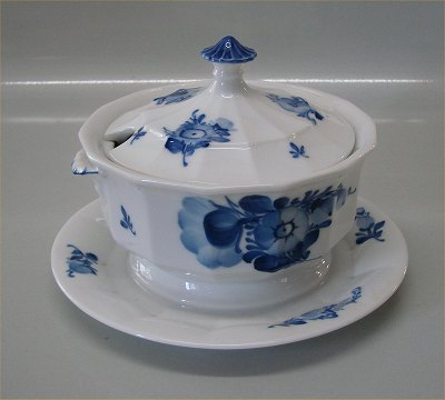 8602-10 Sauceterrin, rund på fad 22 x 15 cm Kongelig Dansk Porcelæn Blå Blomst Kantet