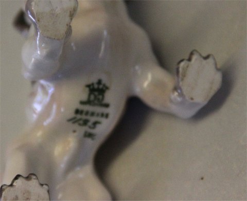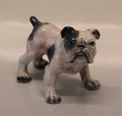 Beskrivelse: Dahl Jensen 1135 Engelsk Bulldog (DJ) 10 cm. Mærket med kongelig krone og DJ Copenhagen 1. sortering i hel og fin stand.