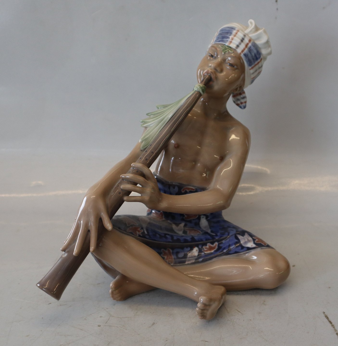 Dahl Jensen 1153 Orientalsk fløjtespiller 24,5 cm (DJ). Mærket med kongelig krone og DJ Copenhageni hel og fin stand.