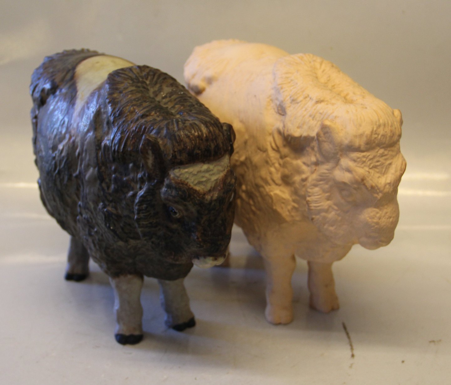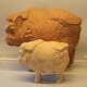 Beskrivelse: Uglasseret Royal Copenhagen Aluminia fajance 3149 Moskus Okse Jeanne Grut 22 x 26 cm