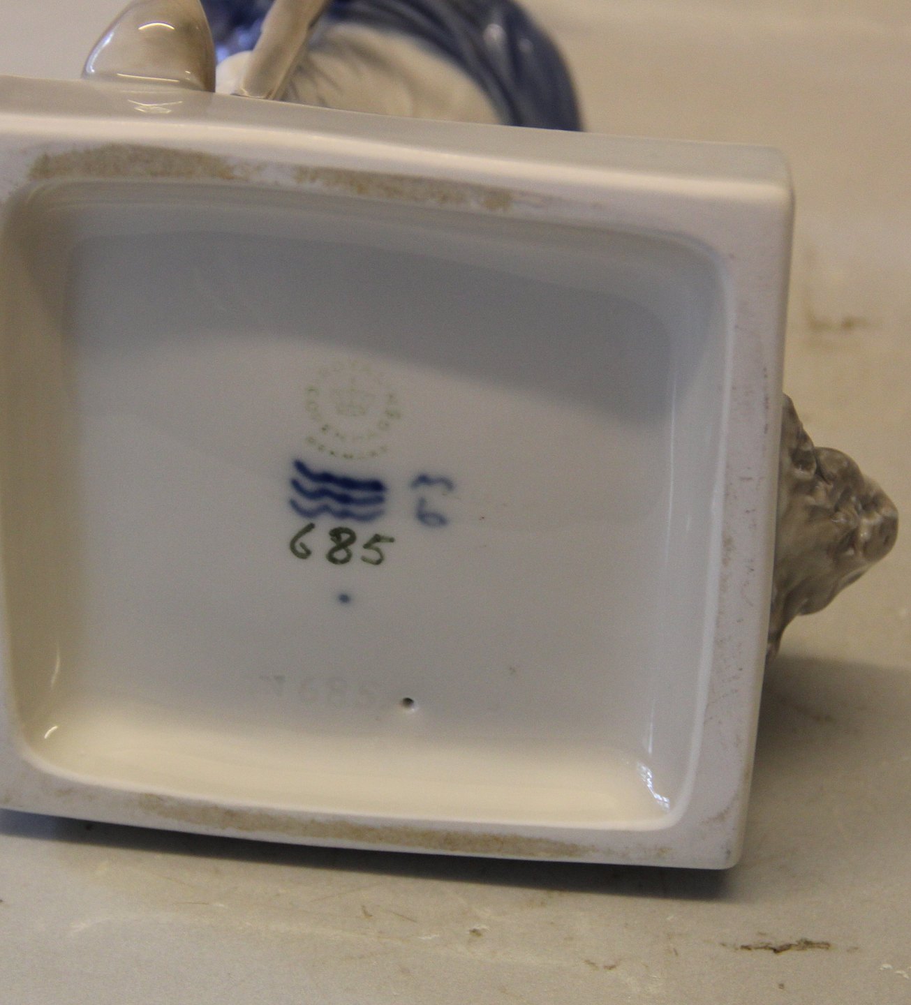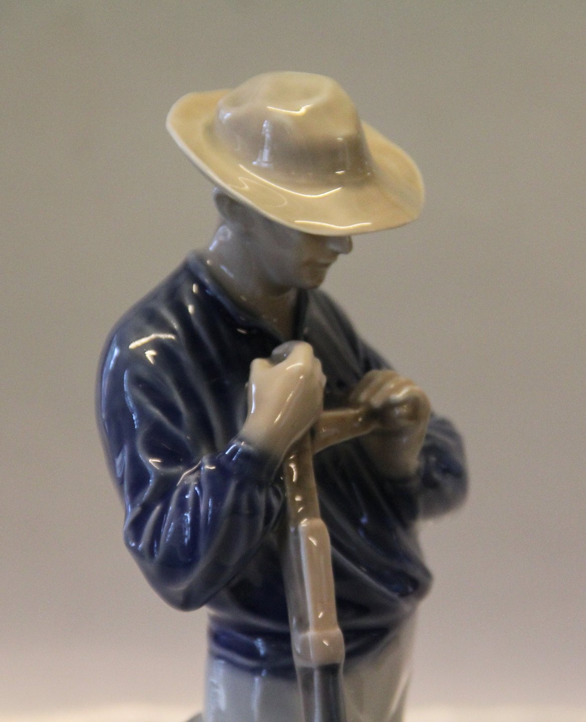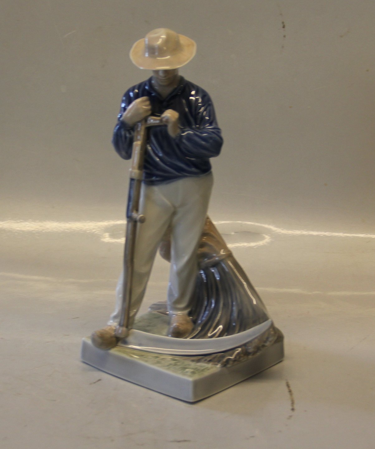 Beskrivelse: Kgl. figur fra Royal Copenhagen 0685 Manden med leen 25 cm Chr. T. 1905 I hel og fin stand Bondedreng med le - høstfolk