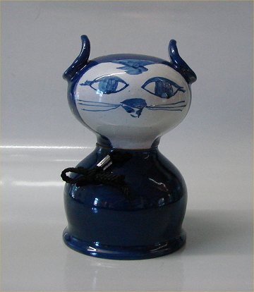 Wiinblad Blå Kat Sparebøsse 1969 "Vi spinder ikke, vi væver" Den blå fabrik, nytår 1969 18 cm