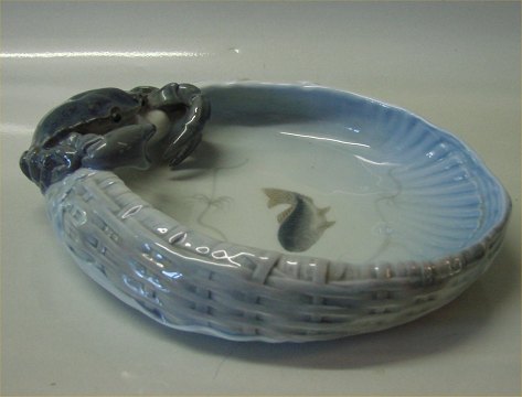 Beskrivelse: Kgl. 2465 Stort krabbeaskebæger med fisk Erik Nielsen 6,5 x 24 x 20 cm fra Royal Copenhagen I hel og fin stand