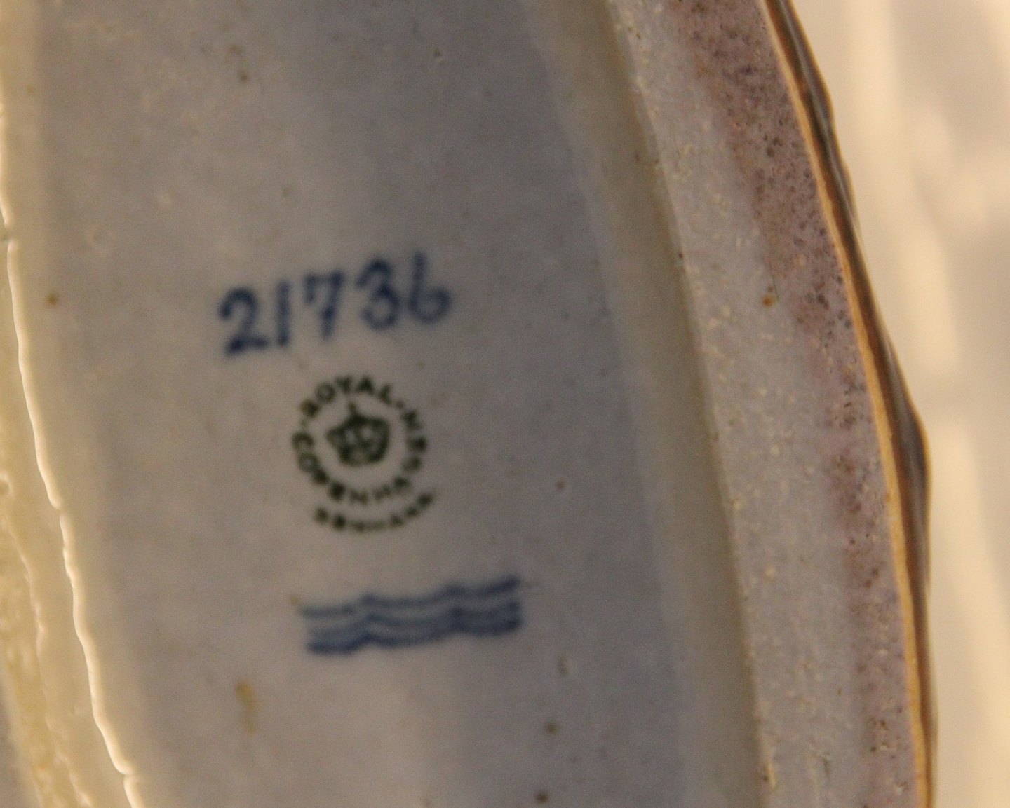 Beskrivelse: Royal Copenhagen stentøj 21736 Kgl. Kalv 18,5 x 26 cm, Knud Kyhn, febr. 1960 1. I fin og hel stand