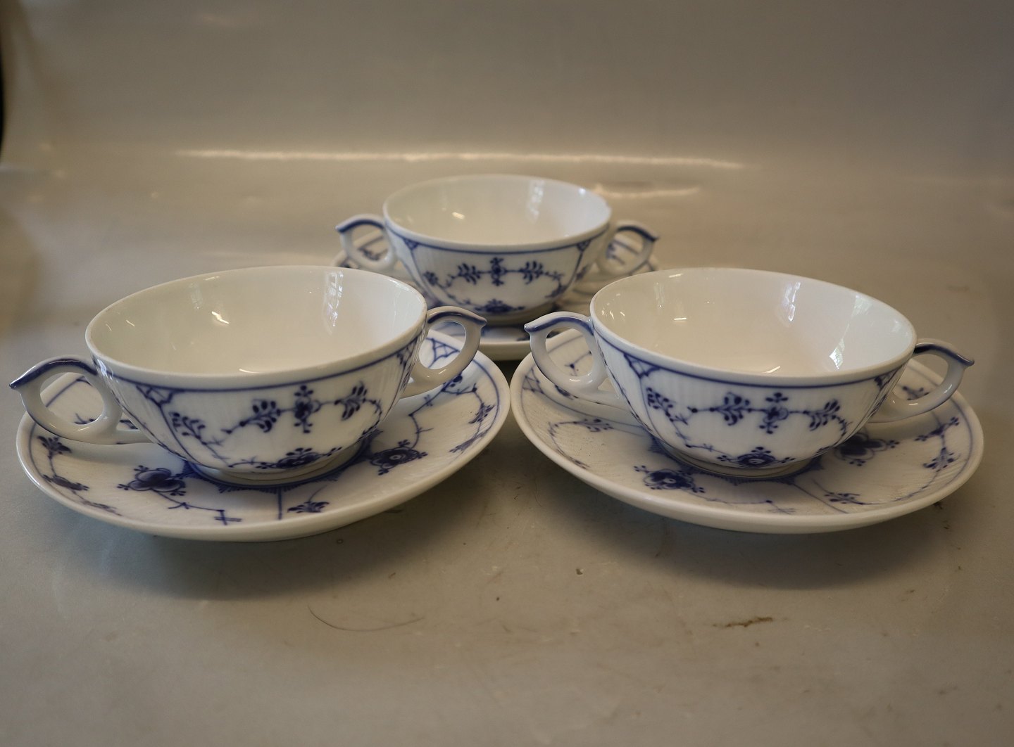 Royal Copenhagen Musselmalet riflet 344-1 Bouillonkop 4 x 9,5 cm , halvtynd, m/to hanke14,5 cm med underkop 14,8 cm. Muselmalet I fin og hel stand. Passer godt sammen med andre blåmalede spise- og kaffestel