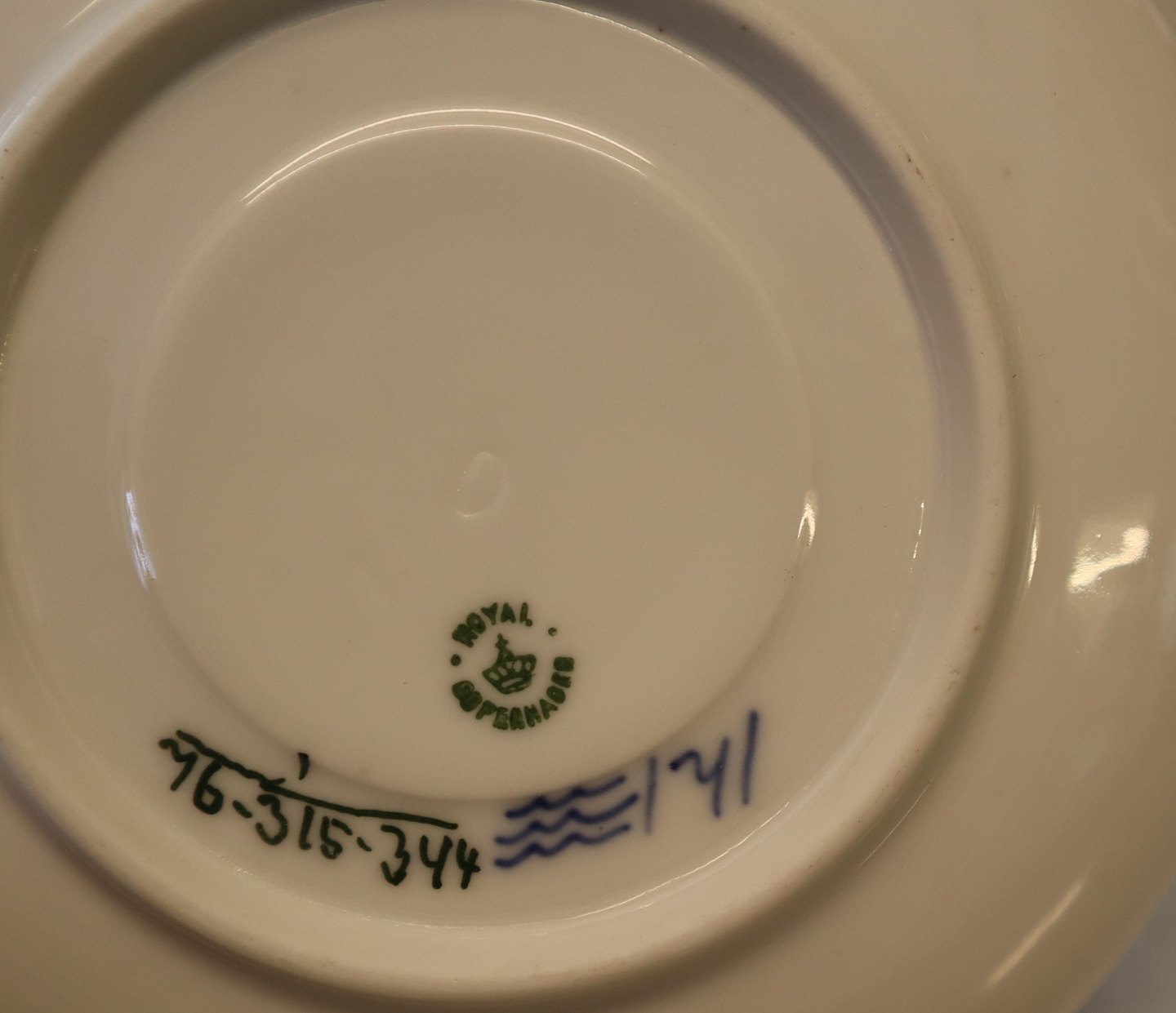Kongelig Dansk Porcelæn Musselmalet 344-1 Bouillonkop, halvtynd, m/to hanke med underkop