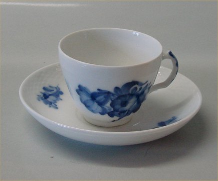 Kongelig Dansk Porcelæn Blå Blomst Flettet 8040-10 Mokka kop 5.5 x 7 cm og underkop 13.7 cm