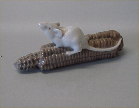 : Kgl. figur fra Royal Copenhagen 0512 Kgl. Mus på majskolbe Erik Nielsen 1890 5,5 x 14 cm I hel og fin stand