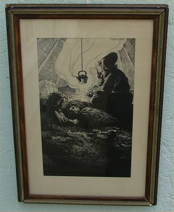 Louis Moe (1857 - 1945) Børn og kvinde med pibe fra Lapland