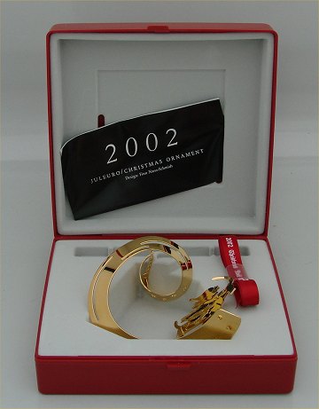 Beskrivelse: Georg Jensen Juleuro 2002 Juletravlhed Messing med 24 karat bladguld. I orginal box. I hel og fin stand. Design Finn Næss-Schmidt