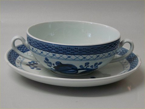Royal Copenhagen Aluminia Suppekop med 2 hanke Tranquebar 1633-11 Bouillon kop med underkop 19 cm I fin og hel stand