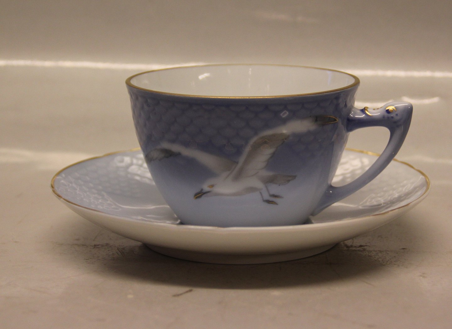 B&G Mågestel med guldkant 104 Morgenkop 6.5 x 10.2 cm /2,25 dl og underkop 16.8 cm (476)