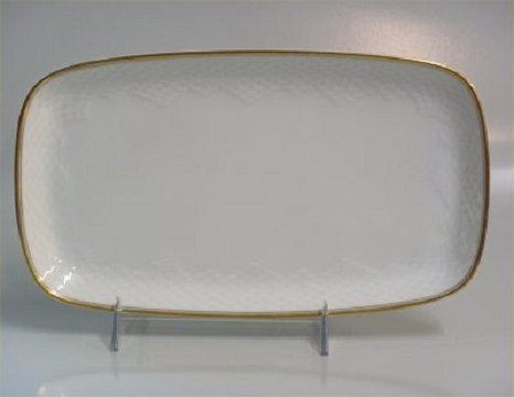 Bing & Grøndahl Hartmann 096 Bakke, aflang 27 x 15 cm (364) Hvidt porcelæn med dobbelguldkant. Bing & Groendahl I hel og fin stand