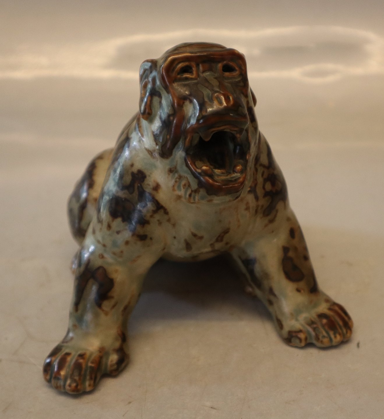 Royal Copenhagen stentøj 20192 Sidende abe 11 x 14 cm; Knud Kyhn March 1929 I fin og hel stand