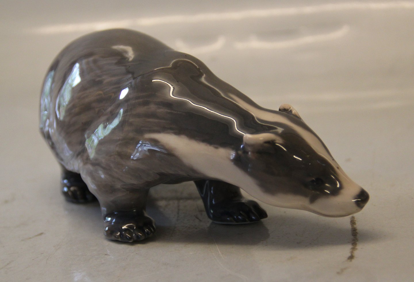 : Kgl. figur fra Royal Copenhagen 1209 Grævling 9 x 19 cm før 1923 I hel og fin stand