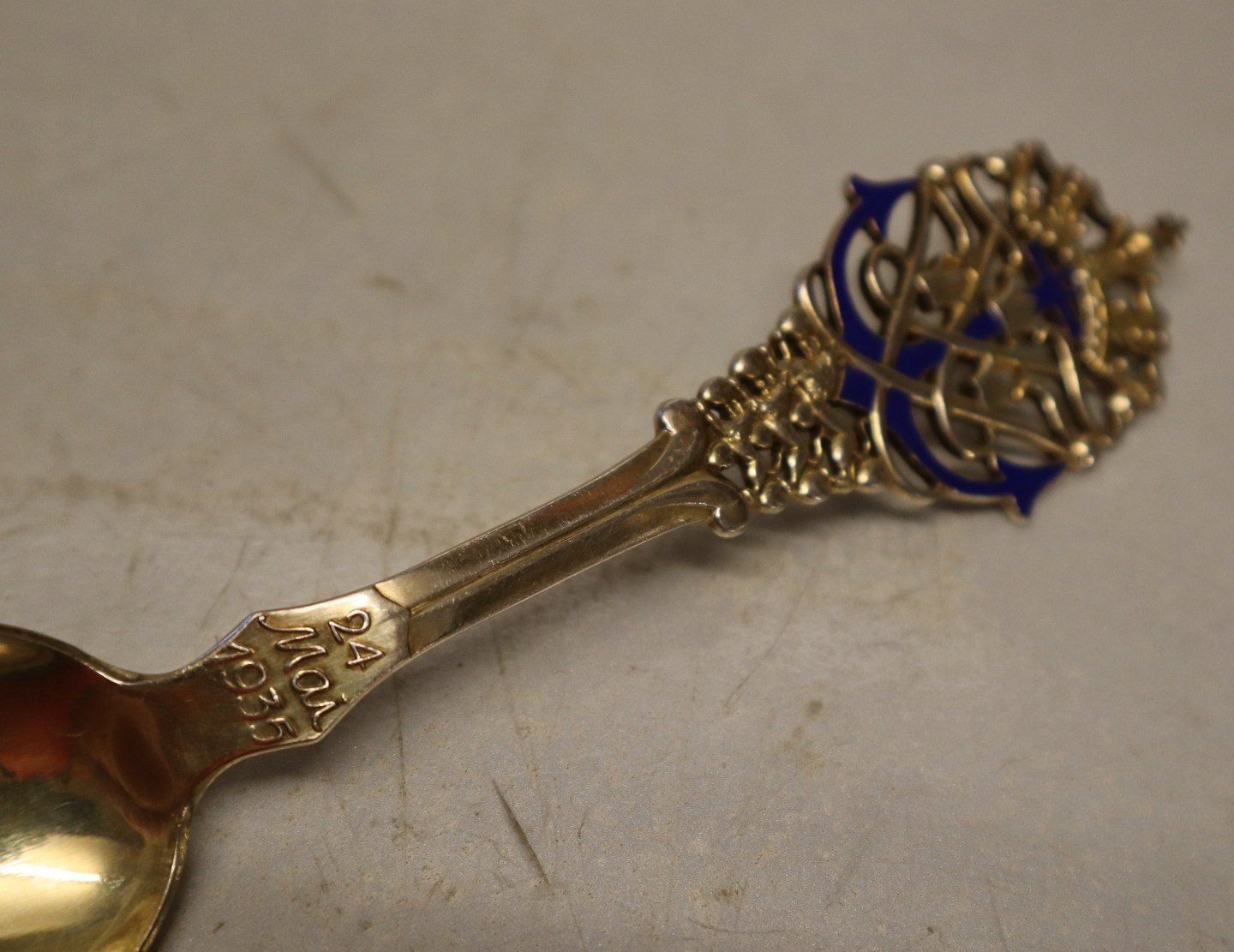 Udført i forgyldt sterling sølv. I perfekt stand