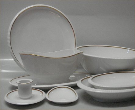 Vega B&G porcelæn : Hvidt porcelæn, riflet kant m guldstreg form 674 (Bernadotte)