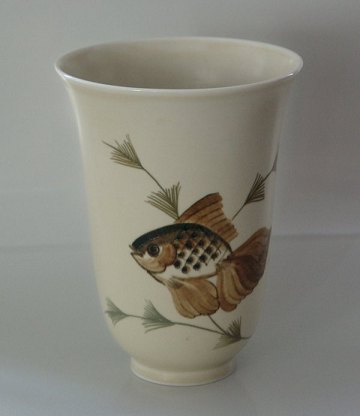 : Fiske Vase 21 x 15 cm Lyngby Porcelain 71 III I fin og hel stand