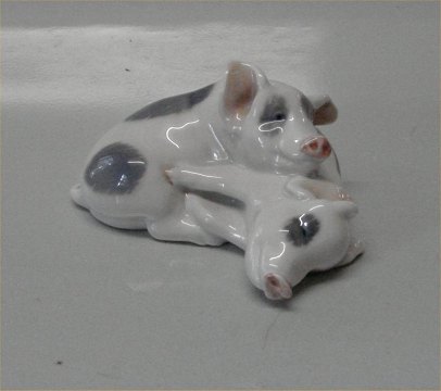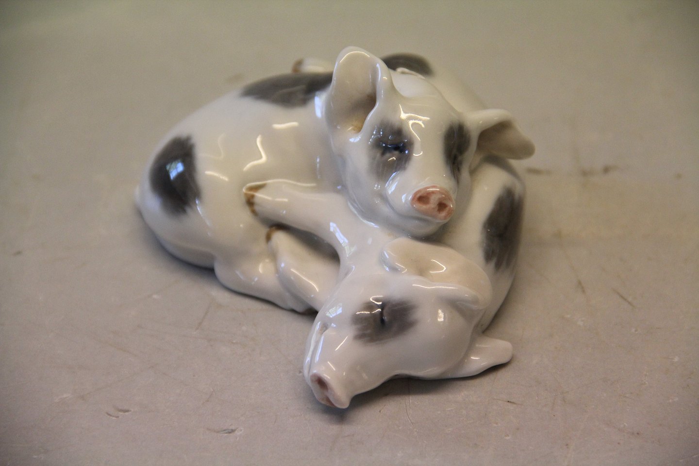 Beskrivelse: Kgl. svin fra Royal Copenhagen 683 Grise - brogede Erik Nielsen 1906 6 x 12 cm 1. sortering I hel og fin stand