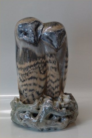 Beskrivelse: Kgl. fuglefigur fra Royal Copenhagen 0283 Ugle par Arnold Krog 33,5 cm I hel og fin stand