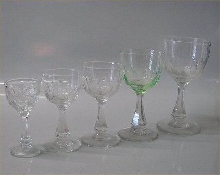 Beskrivelse: Derby glas - Kendes fra bl. a. Holmegaard tilbage til 1891. Hos Kastrup udgår det først i 1950'erne. Halvkugleformet, olivslebet kumme på facetsleben balusterstilk