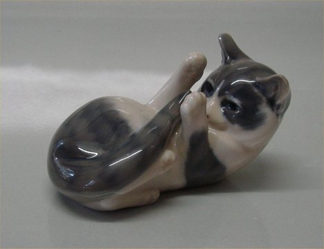 Beskrivelse: Kgl. figur fra Royal Copenhagen 0727-1025 Legende grå og hvid kat 1906 6 x 10 cm I hel og fin stand