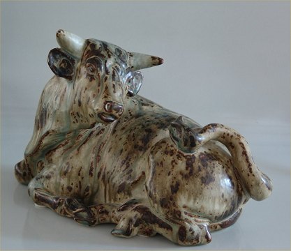 Kongelig Dansk Stentøj 2595 Stor tyr Knud Kyhn ca 25 x 38 cm