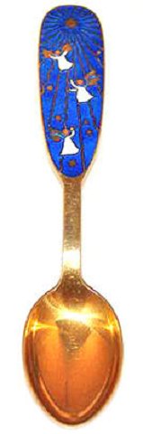 Anton Michelsen Juleske 1953 Englene bebuder Forgyldt sølv med emaljedekoration. Design: E. og U. Clemmensen