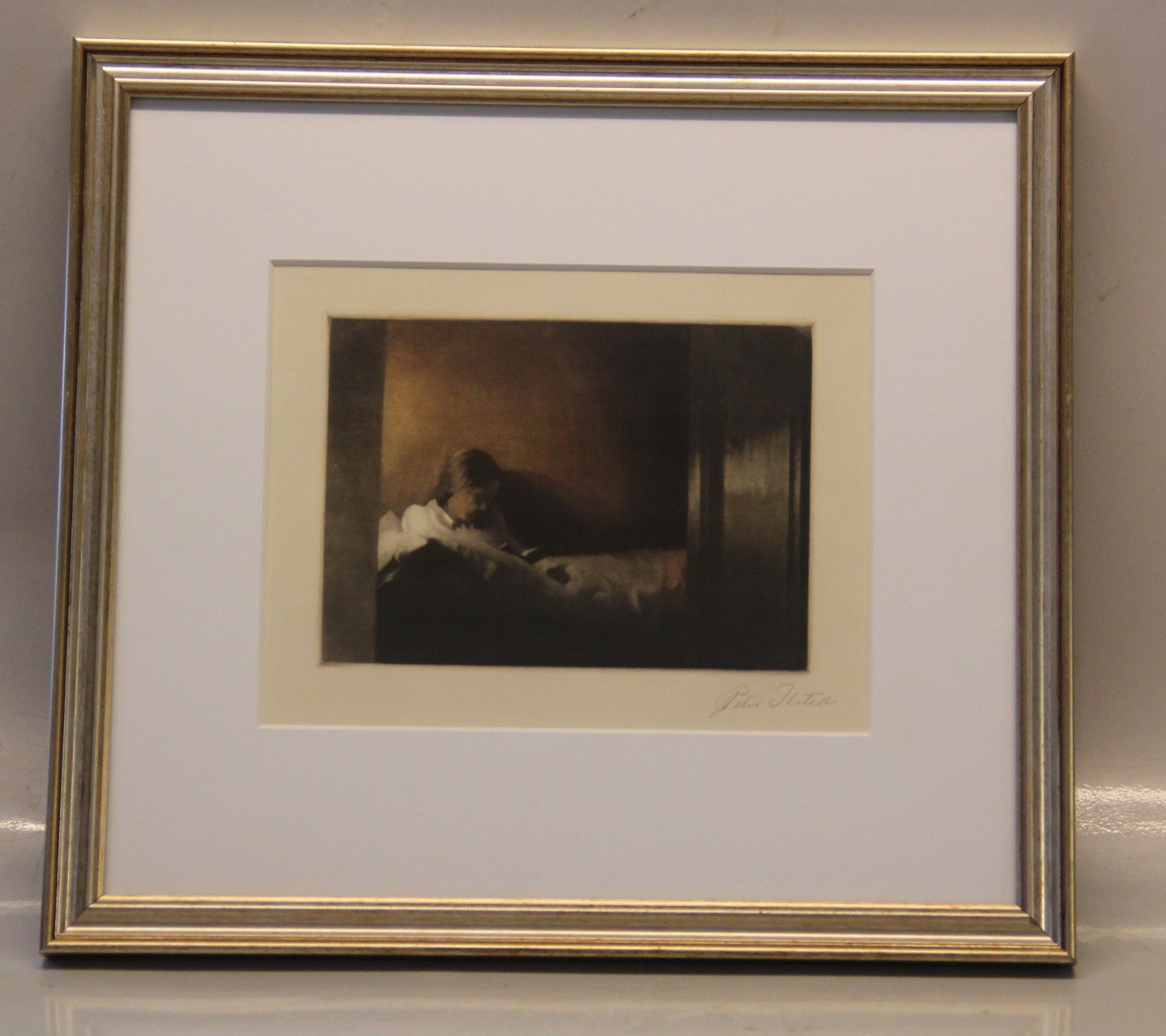 Peter Ilsted Opus 14. Lille Rekonvalescent 1913 Farvemezzotinte Lysmål 10 x 17 cm I flot sølvramme med passepartout 32.3 x 35.5 cm