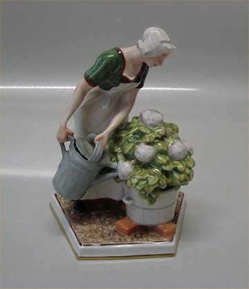 Beskrivelse: Bing & Grøndahl B&G 8038 Pige vander blomster 16 cm Jens Jacob Bregnø/ Hans Tegner I fin og hel stand.
