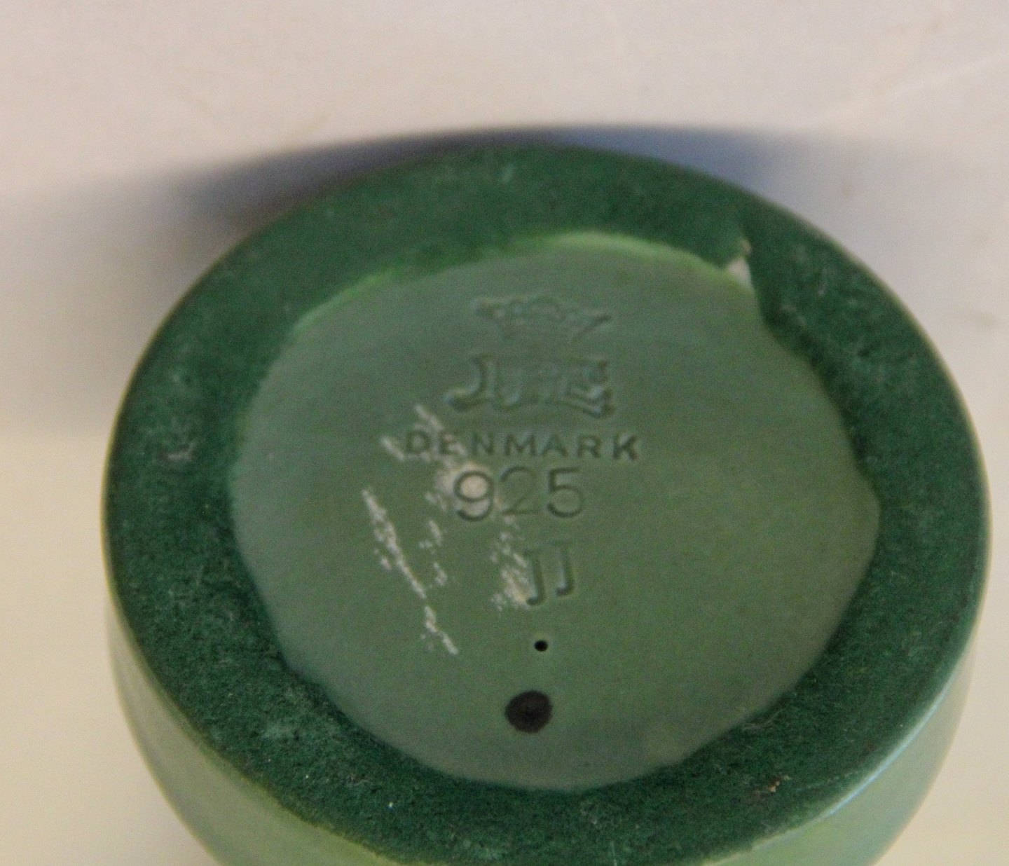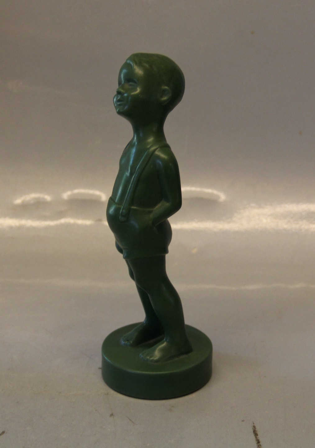 Beskrivelse: 925 Buksetrold (Drengefigur) Verner Hancke 17,5 cm ca 1941 Keramik fra P. Ipsens Enke Kgl. Hof. Terracottafabrik 1843-1955 Ibsen Grøn glasseret