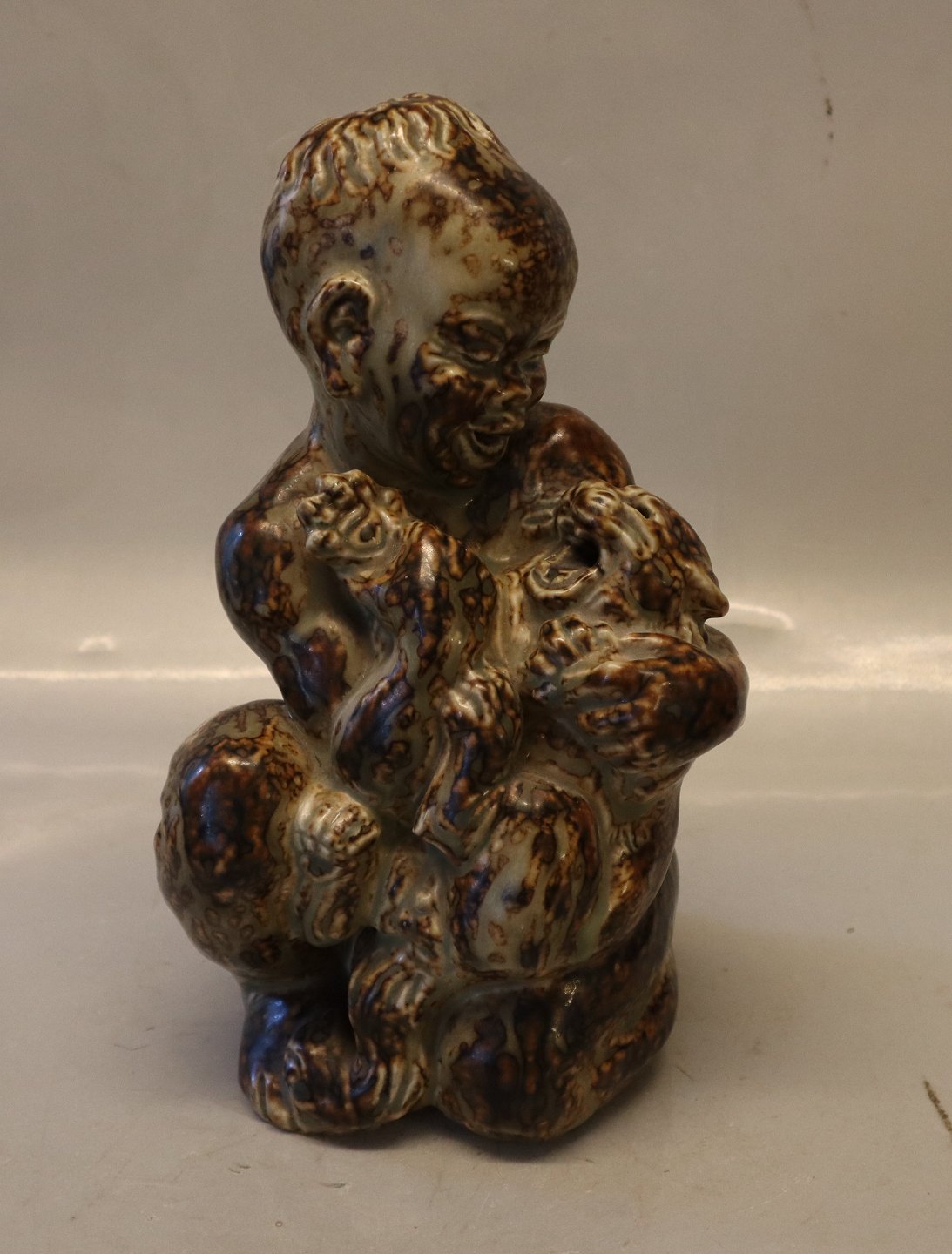 Beskrivelse: Royal Copenhagen stentøj 20244 Negerdreng med vildkat 27 cm Knud Kyhn oktober 1930 1. sortering I fin og hel stand