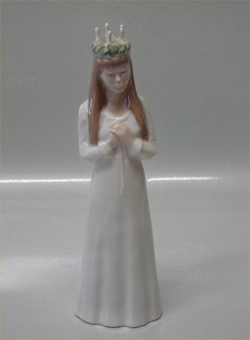 Beskrivelse: Kgl. figur 5273 RC Lucia brud med krone 22 cm Sterret Kelsey fra Royal Copenhagen 1. I hel og fin stand