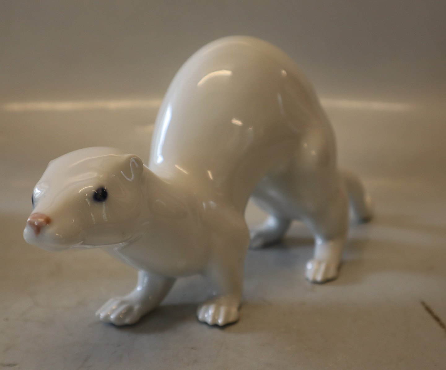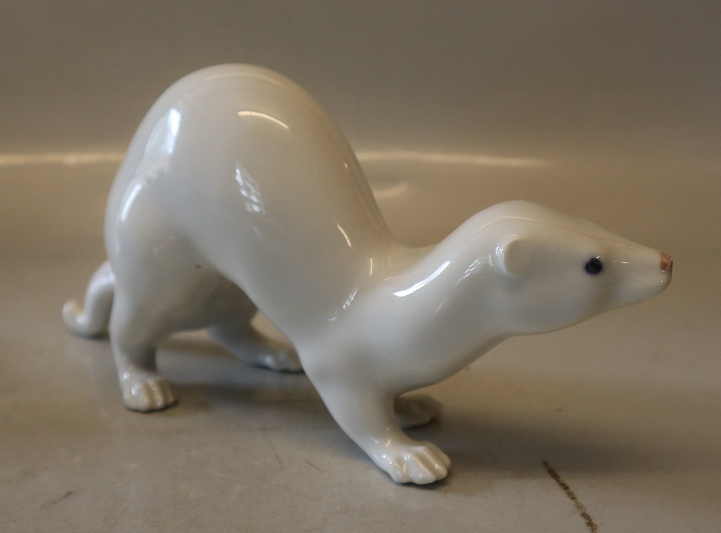 Beskrivelse: Kgl. figur fra Royal Copenhagen 4562 Kgl. Væsel JG 11,5 x 25 cm I hel og fin stand 4562 RC Stoat JG 11.5 x 25 cm Design Jeanne Grut Mink