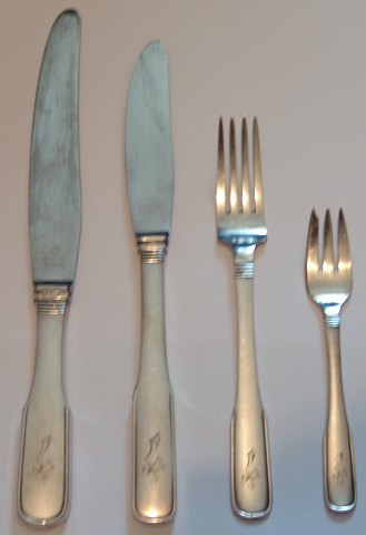 : Hans Hansen Tirslund Sølv Bestik. I god brugt stand, men knivene har små buler for enden af skaftet.