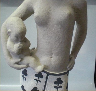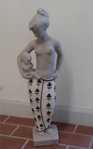 SOLGT Kgl. Dansk Stentøj Unika Kvinde med barn 66 cm Johannes Hedegaard Signeret 1962