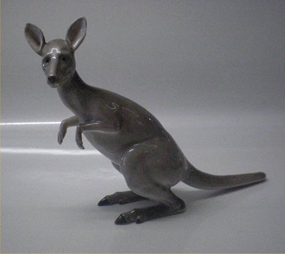 Beskrivelse: Kgl. figur 0469 Kgl. Kænguru der vender hovedet 18 x 24 Design Howitz 1885 fra Royal Copenhagen I hel og fin stand
