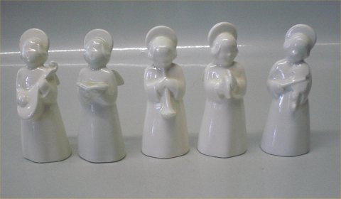 Aluminia Julemusikengle 1955. 5 stk blev skabt af Elisabeth Castenschiold og Nils Thorsson Kongelig Dansk Fajance