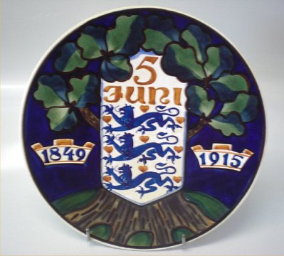 Aluminia kunstfajance 1090-918 Grundlovsplatte 5te Juni Platten 1849-1915 Chr. Joachim 25 cm