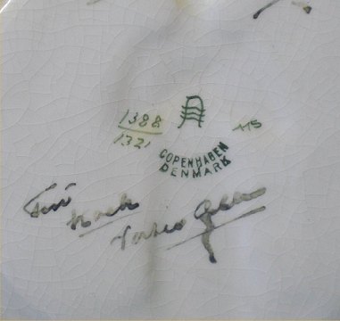 1927 Den kongelige porcelænsfabriks Store Juleplatter af Fajance fra Aluminia 1388-1321 Julerelief 1927 Engel med krydsede hænder og skriftbånd R. Harboe 31,5 cm