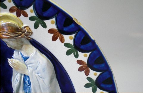 1909 Den kongelige porcelænsfabriks Store Juleplatter af Fajance fra Aluminia 686-612 Julerelief 1909 Maria Bebudelse R. Harboe 29,5 cm