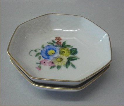 Beskrivelse: Bing & Grøndahl Saksisk Blomst på hvidt porcelæn 246 8-kantet sættefad 9 cm I fin og hel stand