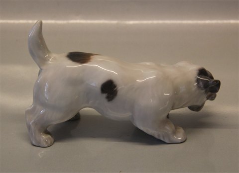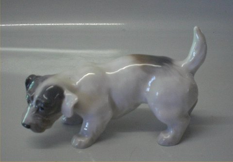Beskrivelse: Kgl. figur fra Royal Copenhagen hund 2786 Terrier med bøjet hoved Knud Kyhn 1927 11 x 17 cm Farvekode 1452 I hel og fin stand