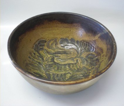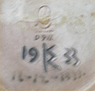 Beskrivelse: Bing Grondahl stentøj: Skål med hjort i flugt 13 x 29 Designet af Knud Kyhn for B&G 1933 Signeret KK 12-12-1933 # D 911
