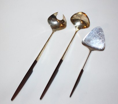 : Cohr Trinita Serveringsdele i Sterling Sølv med Træskaft. I god brugt stand.