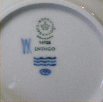 Beskrivelse: Kgl. Indigo: Design Anne Marie Trolle. Dek. 38. I produktion fra 1975 Hvidt porcelæn med blå dekoration