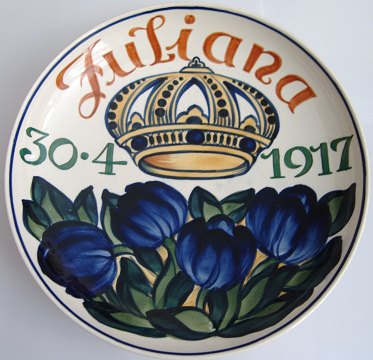 Beskrivelse: Aluminia Julianeplatte fra 1917. Måler 24,5cm og er i fin stand. Lidt krakalering some normalt forekommer på fajance ting.